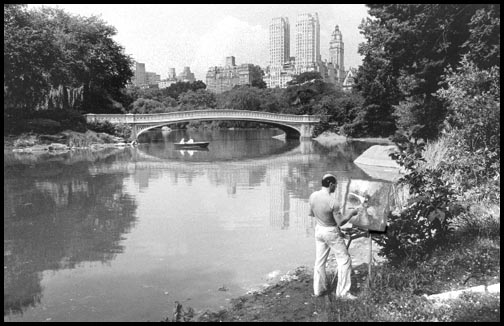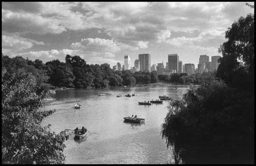 picture is the Central Park lake on a Sunday afternoon.